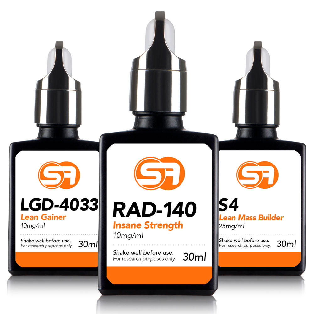 RAD-140 offers great results for increasing strength plus some added muscle mass. It has the ability to dilate the blood vessels for increased blood flow fuelling your muscles for growth and development. LGD-4033 will increase lean muscle and offer greater muscle density with added fat loss. Stacked with S4 will enhance lean muscle and fat free mass gains resulting in a hardcore combo for increasing strength and lean muscle.